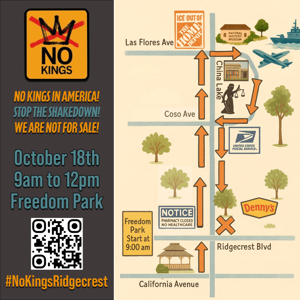 😨 But now there’s this new NSPM-7 and the possibility of the Insurrection Act on the table. Despite my fears, I know that it would be very hard for DHS to make the claim against us when we have such a good report with the City and Ridgecrest PD. It may sound crazy to press forward despite the threats and false accusations the government has made against protestors for No Kings, but I’m doing it anyway. There is risk involved, but it’s a risk worth taking.