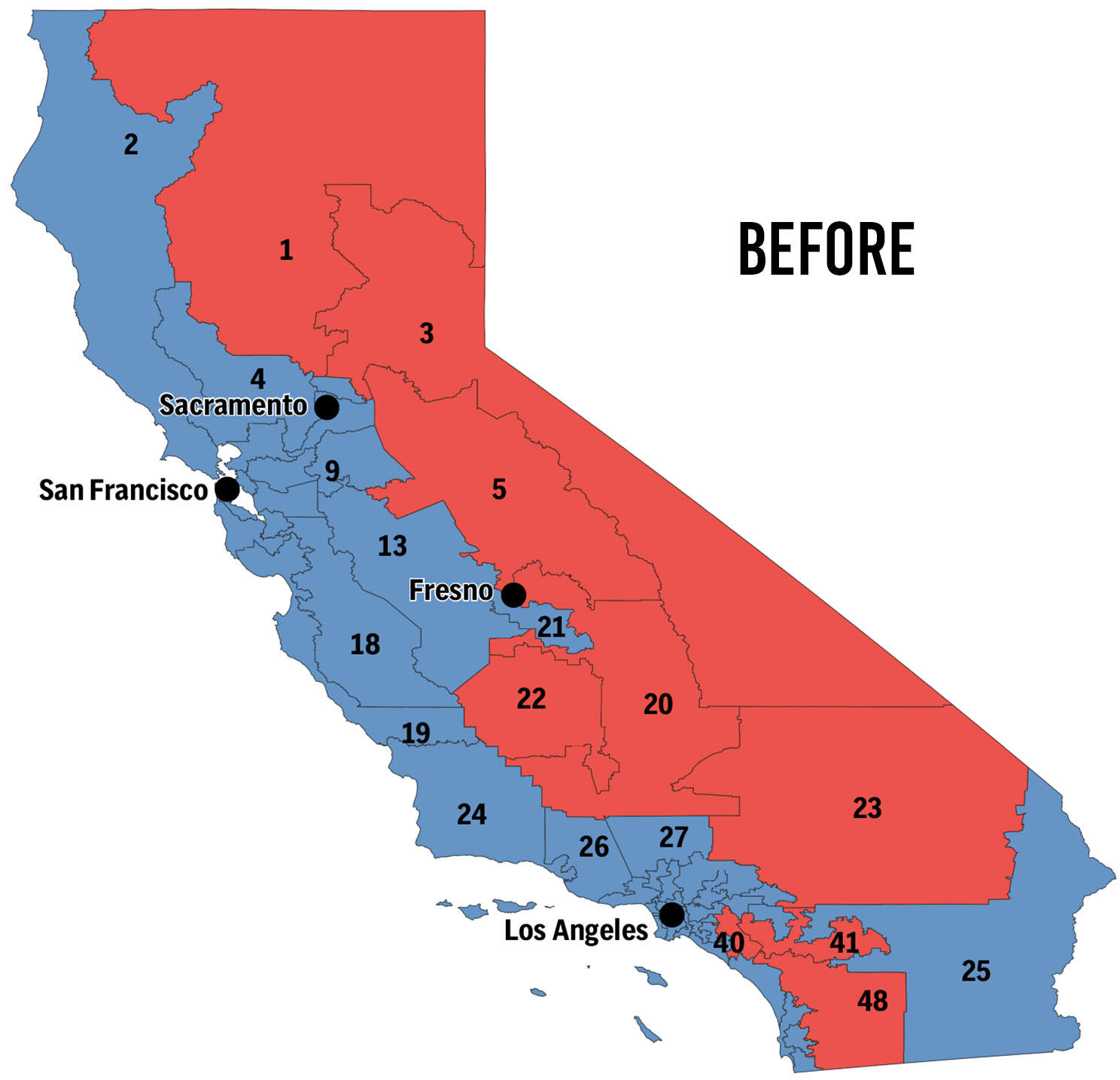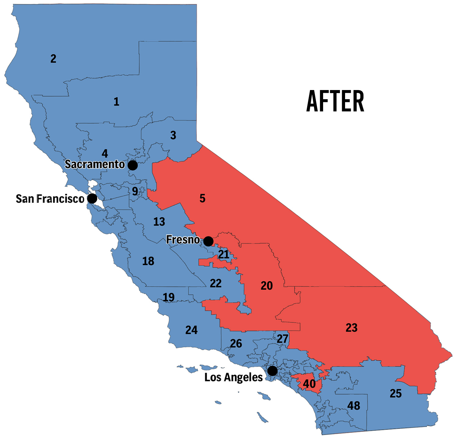 District 23 also became more red post-prop 50 but has a narrower lead for Republicans than District 20. This district may be possible to flip. This fight has been brought to our door in Ridgecrest. It will be important that we work to get-out-the-vote for this neighborhood in Ridgecrest. Prop 50 may have secured 5 seats for Democrats, but that doesn’t mean more can’t be flipped Blue.